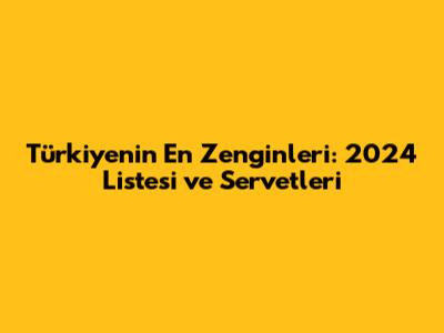 Meta: Türkiye'nin en zenginleri listesi 2024! Kimler zirvede, servetleri ne kadar? İşte Türkiye'nin en varlıklı isimleri ve başarı sırları.